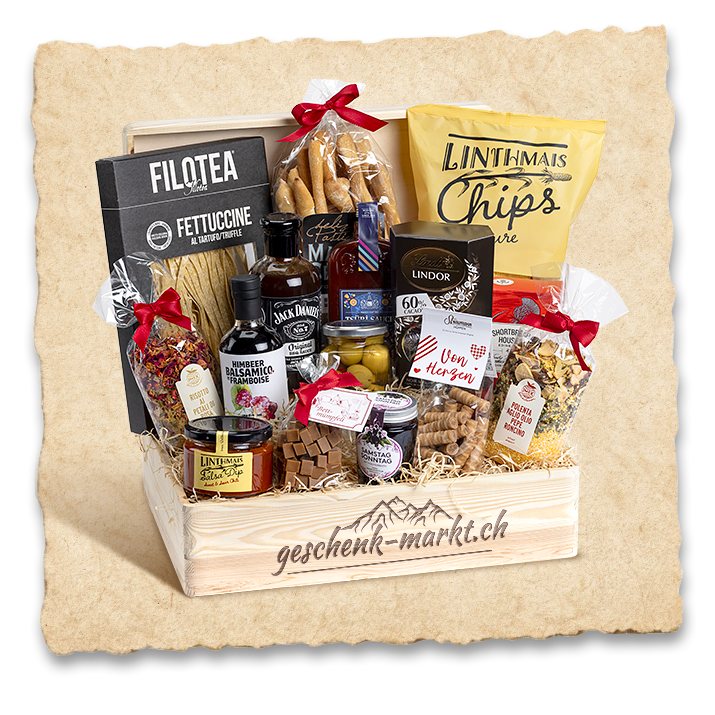 Eine Geschenkbox zu verschenken ist immer eine schöne Idee – aber noch persönlicher wird sie, wenn du sie selbst individuell zusammenstellst! Bei uns kannst du deine eigene Geschenkbox ganz nach deinen Vorstellungen gestalten. Wähle deine Lieblingsprodukte aus, ergänze sie mit persönlichen Gegenständen und mache dein Geschenk zu etwas ganz Besonderem. So stellst du deine individuelle Geschenkbox zusammen: Wähle eine Box – Unter der Kategorie „Selber zusammenstellen“ findest du verschiedene Geschenkboxen. Such dir die passende Grösse aus, welche am besten zu deinem Anlass passt. Fülle die Box mit leckeren Spezialitäten – Wähle aus unserem Sortiment deine Lieblings-Food-Spezialitäten aus. Wir empfehlen je nach Box: - Für den Hintergrund der Box: 3 bis 6 grössere Artikel (z. B. Prossecco, Pasta, Linthmais Chips oder Süssigkeiten)- Für den Vordergrund: 5 bis 10 kleinere Artikel (z. B. Konfitüren, Tee, Kräutermischungen, BBQ-Saucen etc.) Individuelle Ergänzungen – Wenn du deine Geschenkbox noch persönlicher gestalten möchtest, kannst du sie mit eigenen Produkten oder persönlichen Gegenständen ergänzen. Vielleicht hast du eine besondere Erinnerung, ein kleines Andenken oder etwas Selbstgemachtes, dass du hinzufügen möchtest? Deine Kreativität kennt keine Grenzen! Mit Gravur oder Bild personalisieren – Möchtest du deine Geschenkbox mit einem eigenen Bild oder einer persönlichen Gravur versehen? Kein Problem! Lade einfach deine Bild- und Textdatei hoch oder sende sie uns per E-Mail an info@geschenk-markt.ch. Wir sorgen dafür, dass deine Box eine ganz persönliche Note erhält. Lieferung und Zusammenstellung – Wir senden dir die Geschenkbox und die bestellten Artikel unverpackt zu. So kannst du sie in Ruhe zu Hause nach deinem Geschmack arrangieren und gegebenenfalls mit weiteren persönlichen Elementen ergänzen. Warum eine selbst zusammengestellte Geschenkbox? Persönlichkeit: Du kannst genau die Produkte auswählen, die am besten zur beschenkten Person passen. Kreative Freiheit: Deine Geschenkbox wird garantiert einzigartig. Perfekt für jeden Anlass: Ob Geburtstag, Hochzeit, Weihnachten oder einfach so – du gestaltest die Box individuell für den jeweiligen Anlass. Eine besondere Überraschung: Selbst zusammengestellte Geschenke haben immer eine persönliche Note und zeigen, dass du dir Gedanken gemacht hast. Jetzt loslegen und deine einzigartige Geschenkbox gestalten! Besuche unsere Kategorie "Selber zusammenstellen" und erstelle im Handumdrehen dein persönliches Geschenk. Hast du Fragen oder besondere Wünsche? Dann kontaktiere uns einfach unter info@geschenk-markt.ch – wir helfen dir gerne weiter!