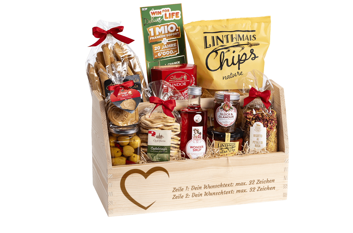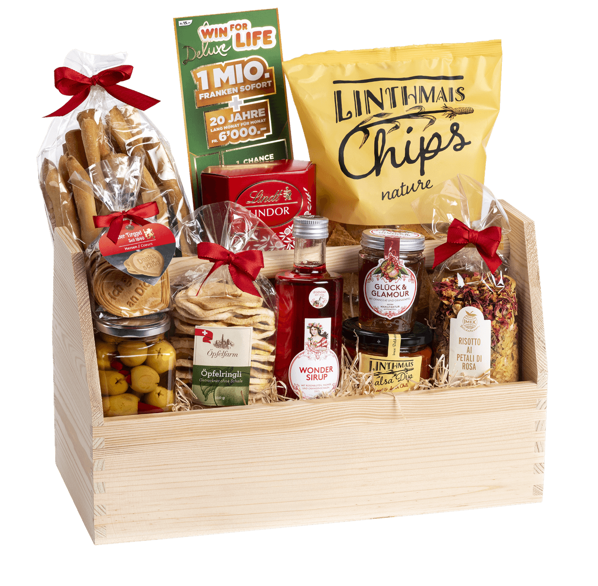 Genuss und Glück vereint. Edle Spezialitäten treffen auf die Chance, eine Million Franken sofort zu gewinnen – plus 20 Jahre lang jeden Monat CHF 6'000 mit dem „Win for Life“-Los. Ein Geschenk voller Freude und Spannung!